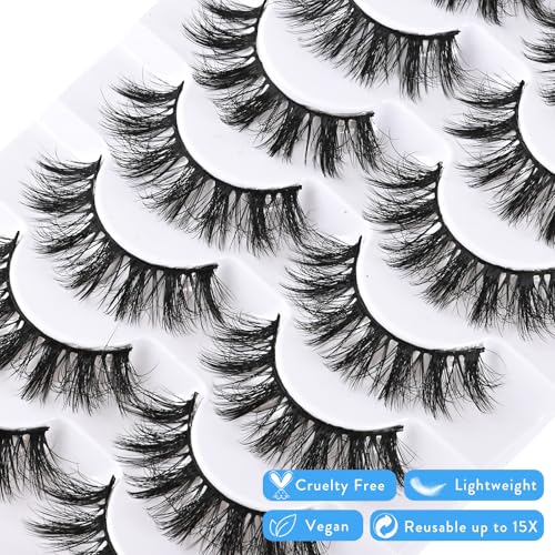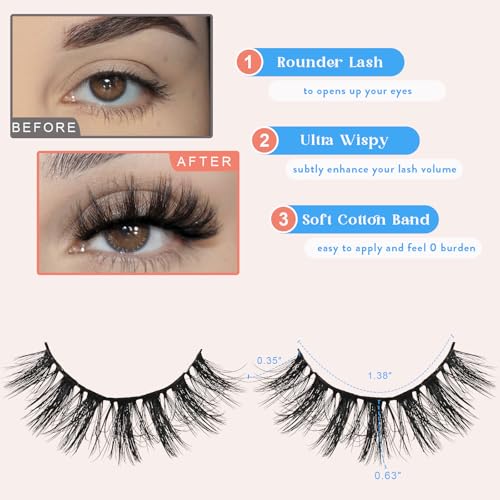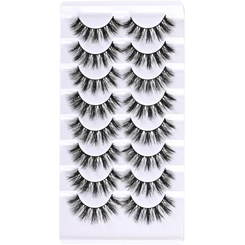 Mink Lashes Fluffy Wispy Eyelashes Natural Fake Eye Lash Pack 8D Short Strips Eyelash Reusable False Lashes for Doll Eye Small Dramatic Volume Spiky Cluster Strip Lashes (Fluffy | 9-16mm)
