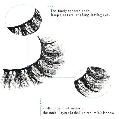 Fluffy Mink Eye Lashes: QUNETY fluffy lashes, 9-16mm mink lashes, 8D fluffy design makes your eyes look bigger and more attractive, and if you like long and thick eyelashes, then these false eyelashes are perfect for you