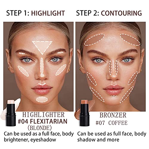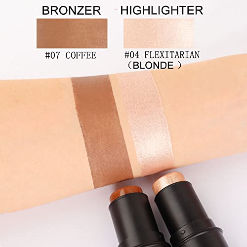 evpct 2Pcs Face Cream Contour Bronzer Sticks Makeup Highlighter Highlight Brown Creme Cheek Contour Sticks contorno en crema Bronzing Foundation Stick Kit Shadow Shading Face Contour Highly Piamented